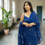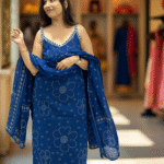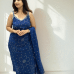 This stunning indigo Bandhani suit exudes elegance and tradition with a modern twist. Featuring delicate white bandhej patterns in floral motifs, the sleeveless kurta is beautifully detailed with mirror work along the neckline, adding a subtle shimmer. Paired with a matching dupatta and straight-fit pants with front cut pattern, this ensemble is perfect for festive gatherings, casual celebrations, or a graceful everyday ethnic look. The breathable fabric and timeless design make it both stylish and comfortable.